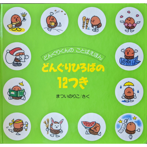 どんぐりくんたちと1月から12月までの遊びや行事を楽しみながら、名場面にでてくる名詞をあてっこしていく絵本。